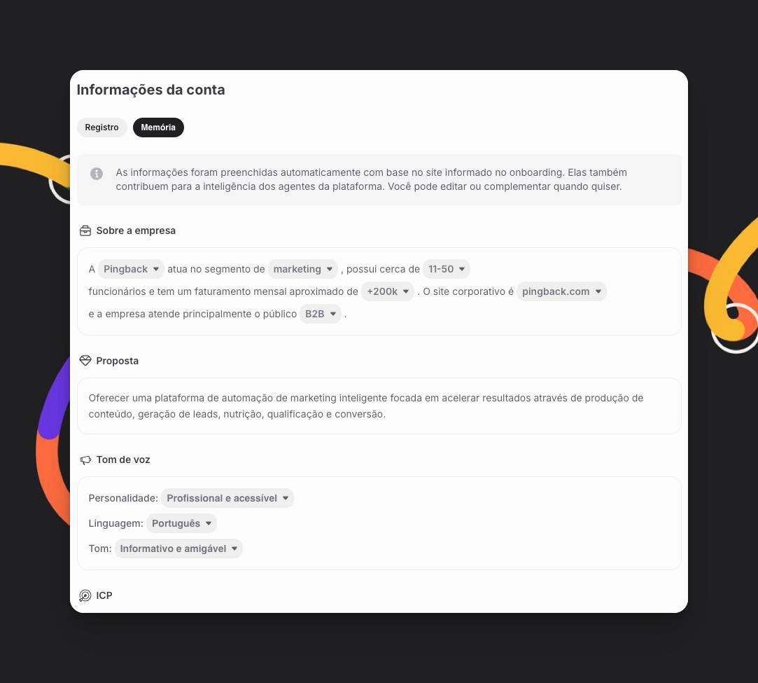 Quanto mais completas forem essas informações, melhores serão os resultados obtidos com a inteligência artificial da Pingback.