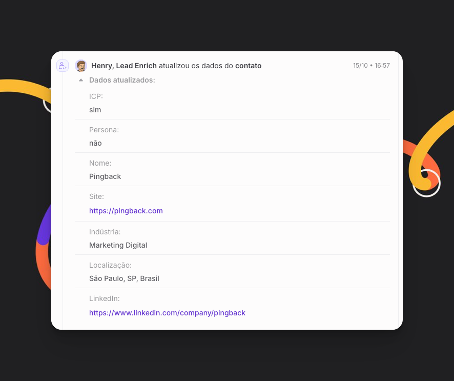 Evento "Henry, Lead Enrich atualizou os dados do contato"