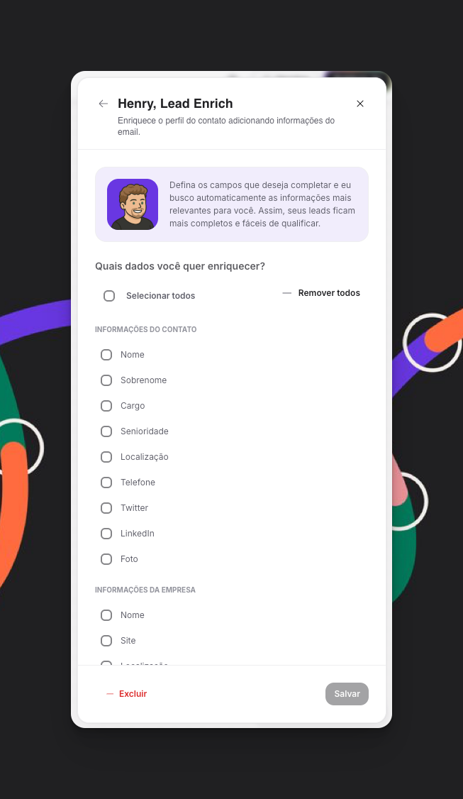 Selecione quais informações deseja enriquecer