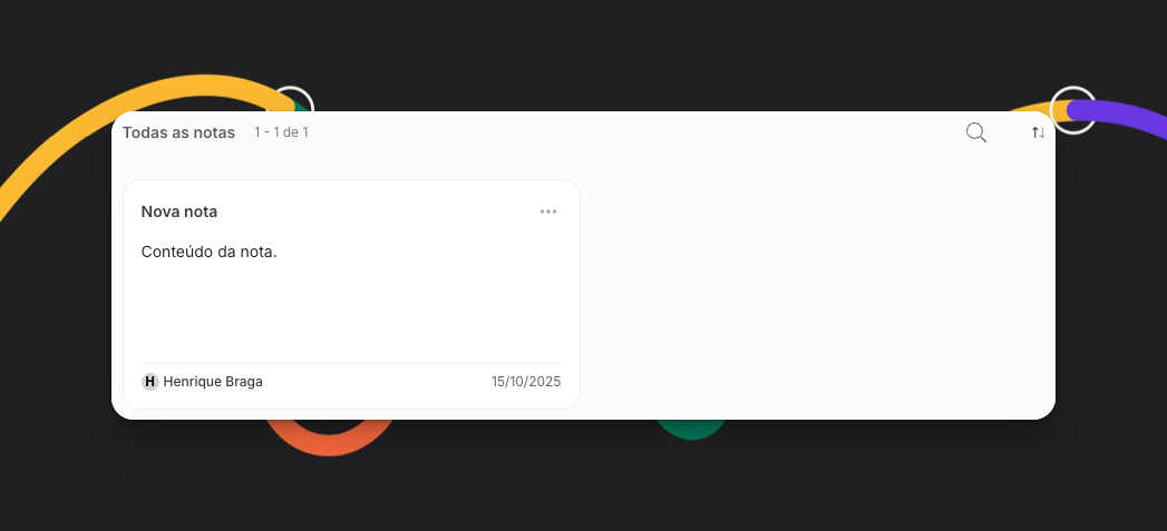 Essas notas automáticas aparecem na mesma lista, claramente identificadas como criadas pelo AI Agent, e podem ser editadas normalmente se necessário.