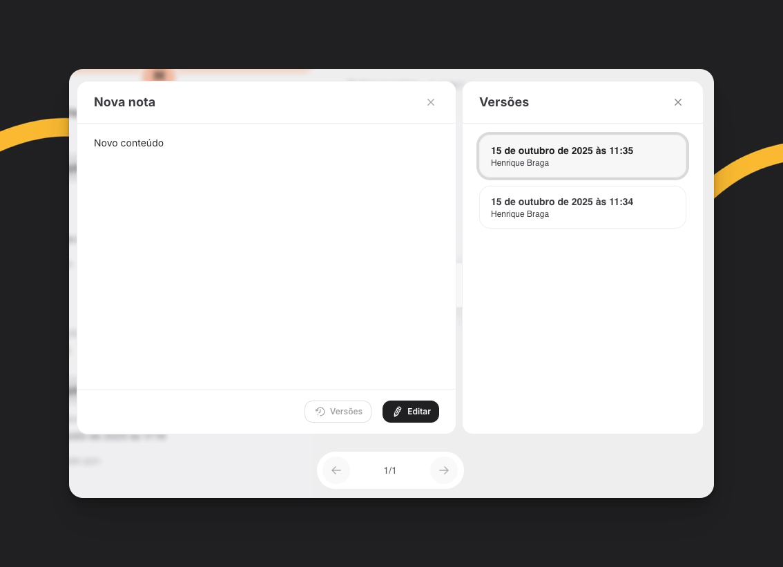 Uma das funcionalidades mais poderosas das notas é o sistema de versionamento. Sempre que você edita uma nota existente: