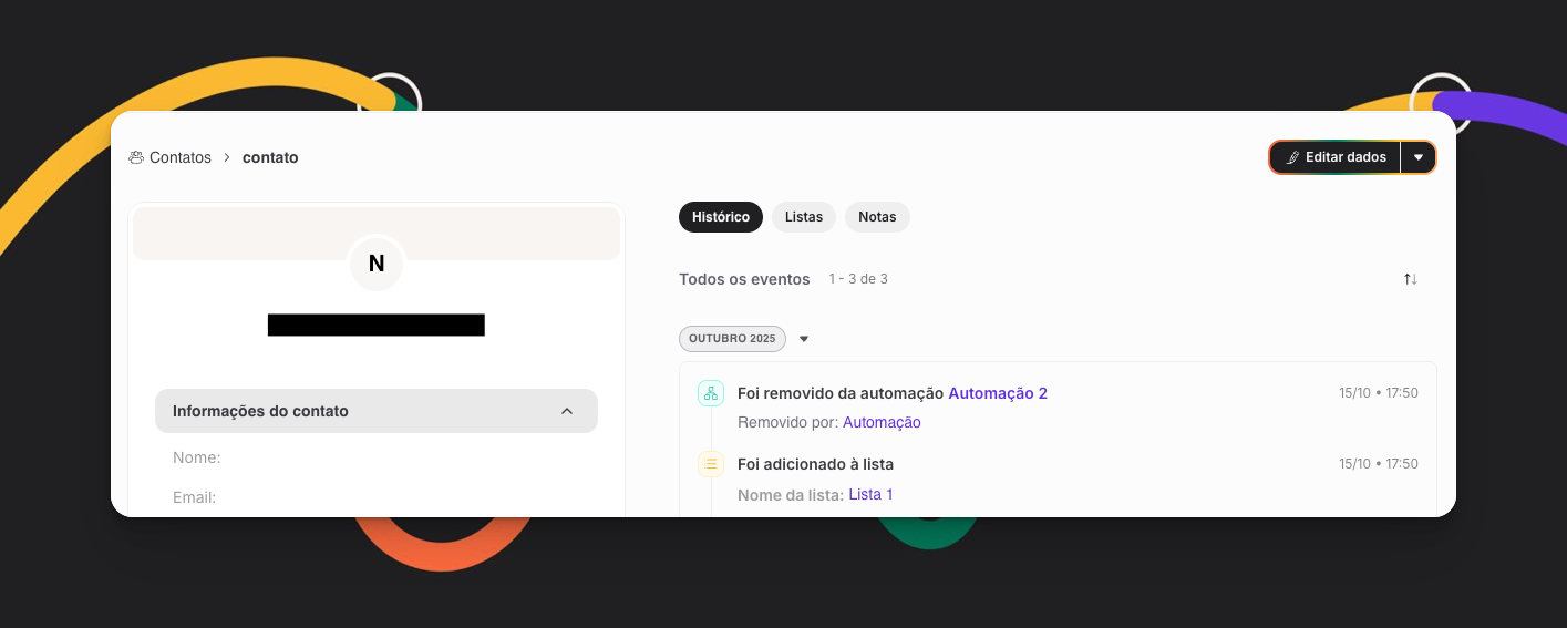 Toda remoção fica registrada no histórico do contato:
