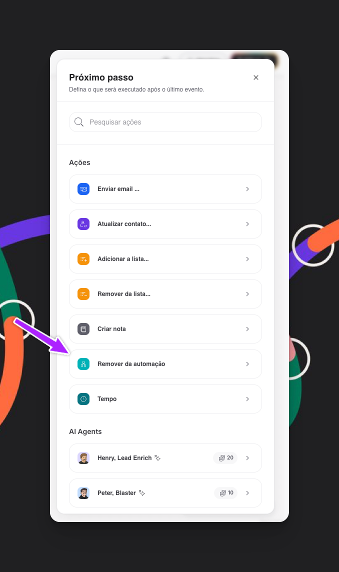 Selecione a automação da qual quer remover o contato
