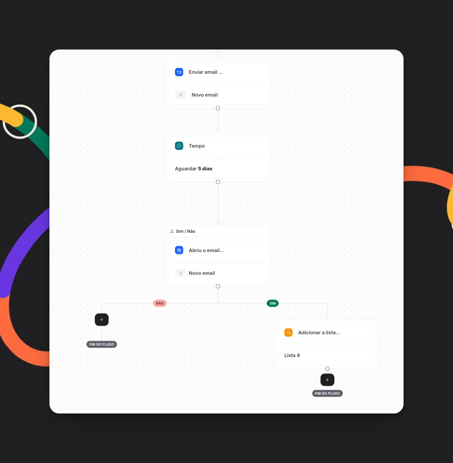 Insira um atraso: clique no ícone mais "+" e selecione "Tempo". Defina o período de atraso (por exemplo, 1 dia, 2 horas, etc.);