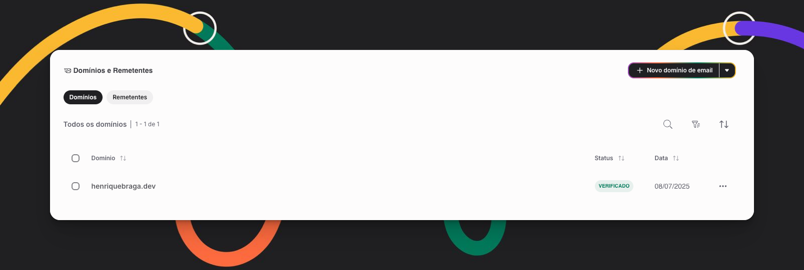 Após configurar os rementes, a sua conta está apta para enviar emails! No momento de construção do email, você selecionará qual domínio e remetente será utilizado no envio.