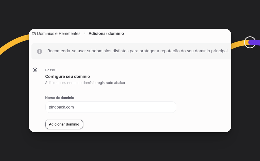 Digite o domínio desejado, como pingback.com e clique em Adicionar domínio.