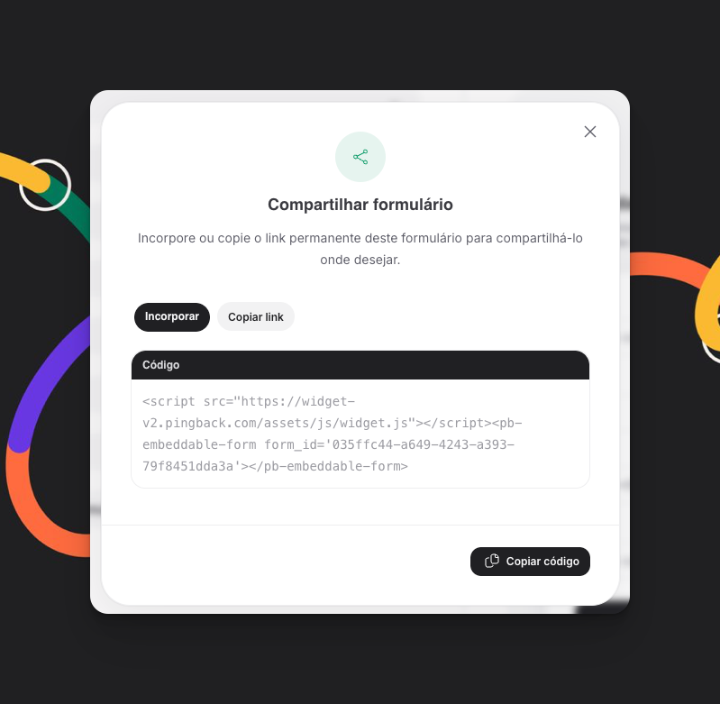 Utilize o link público gerado pela Pingback para compartilhar o formulário diretamente.