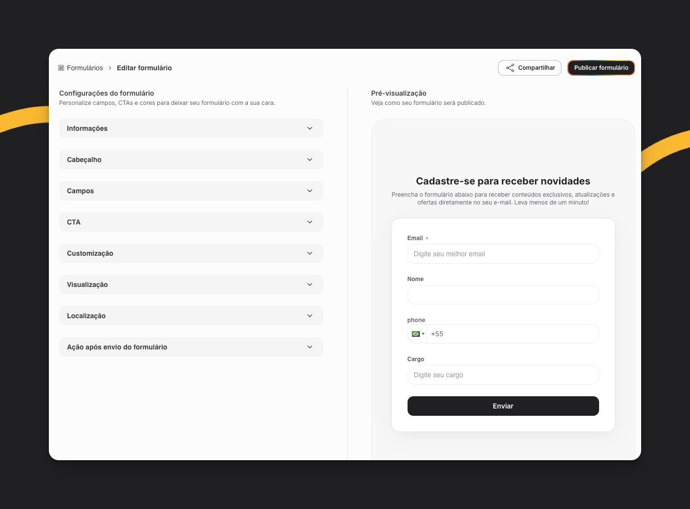 Personalize o visual do formulário de acordo com a identidade visual da sua marca.