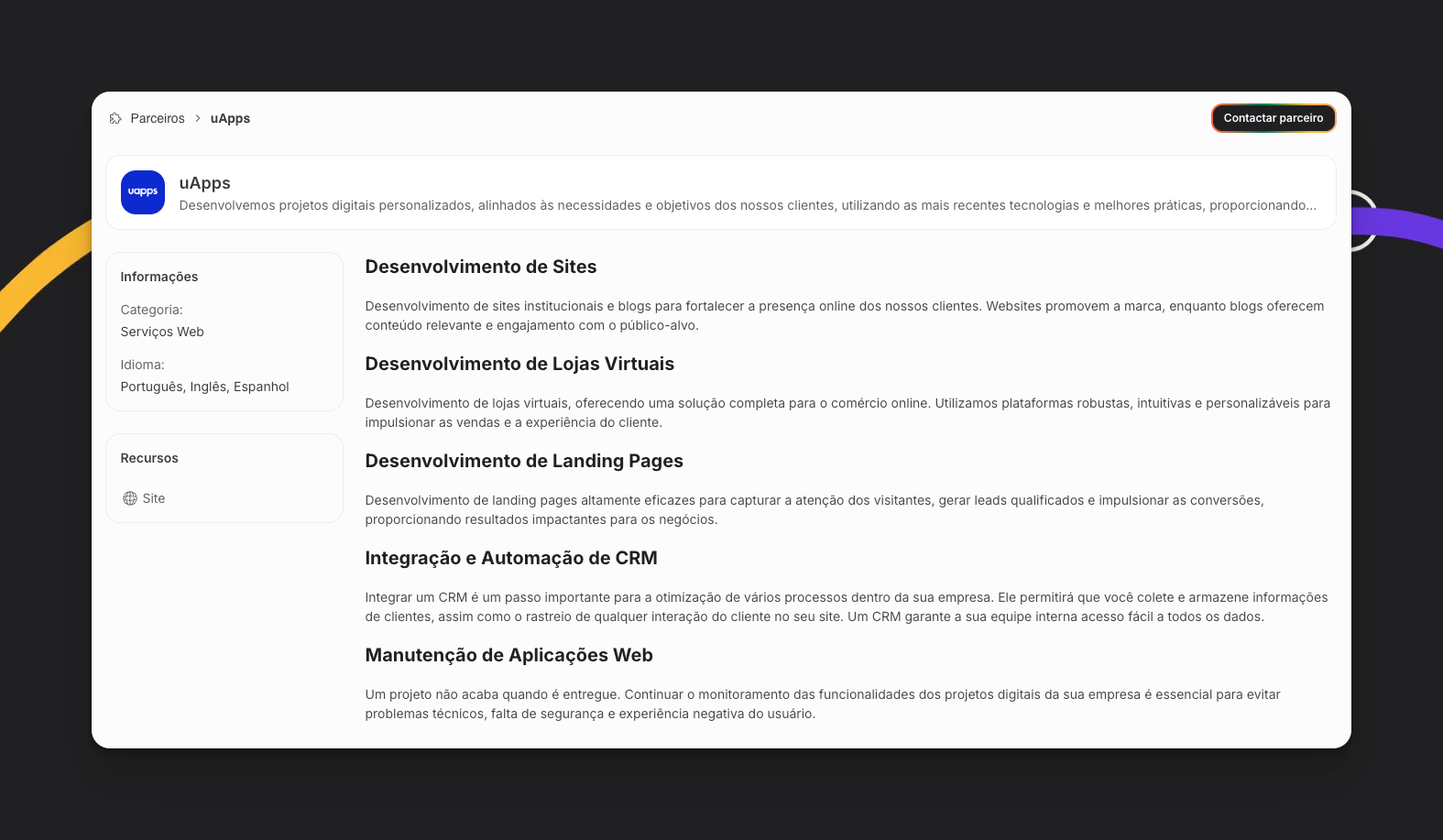 Clique em "Contatar parceiro" para iniciar uma conversa direta sobre suas necessidades.